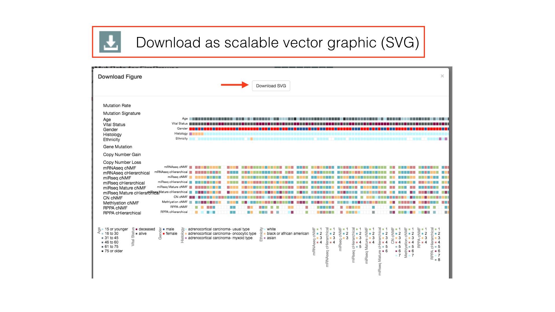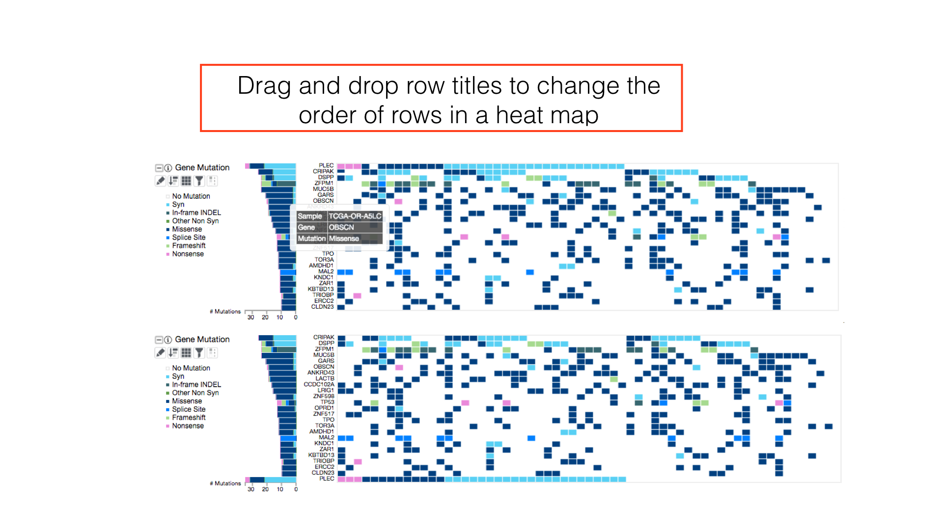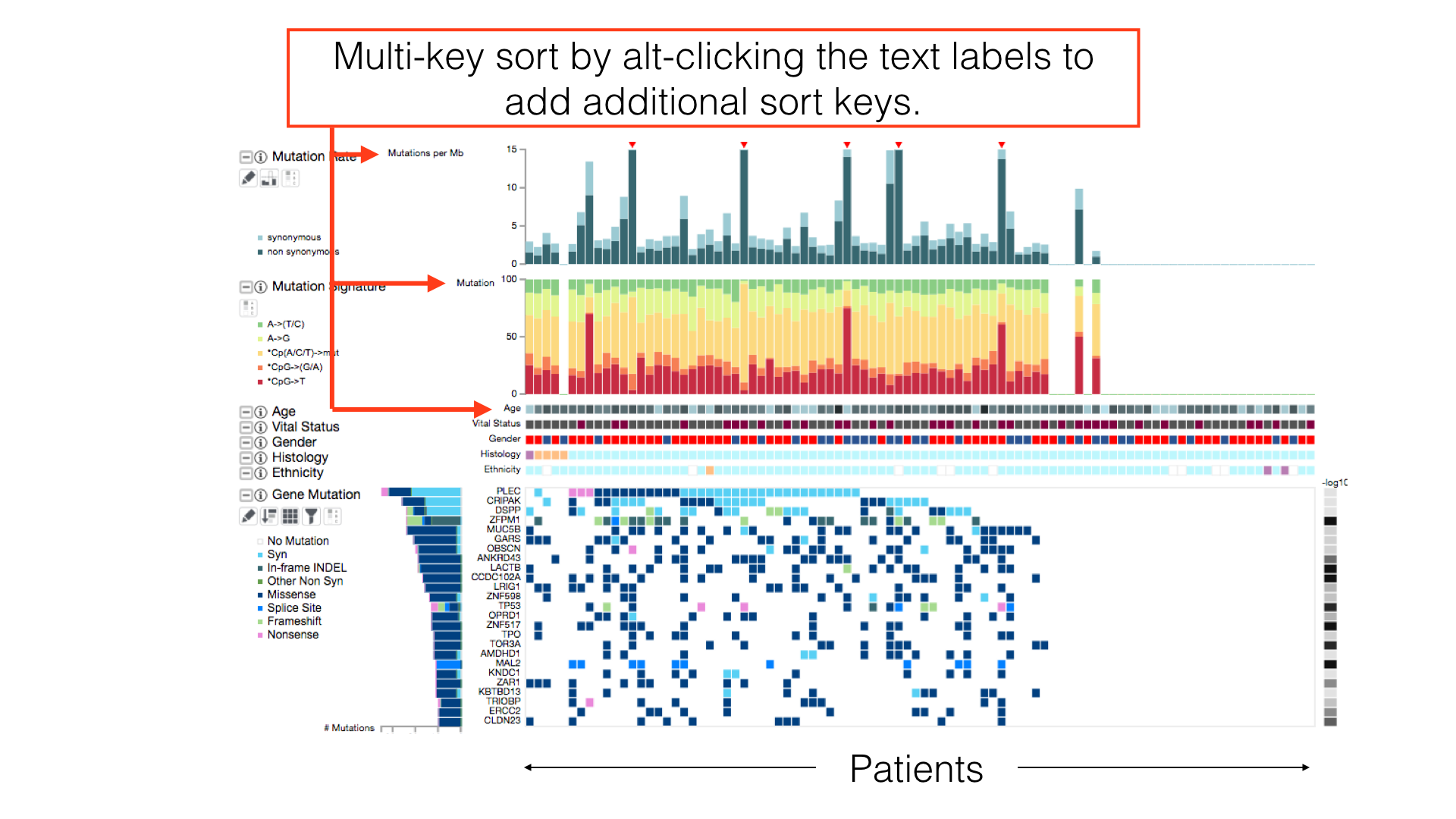 By default, patients in a cancer cohort are sorted first by the histological subtypes (if available), then by the gene mutations.
