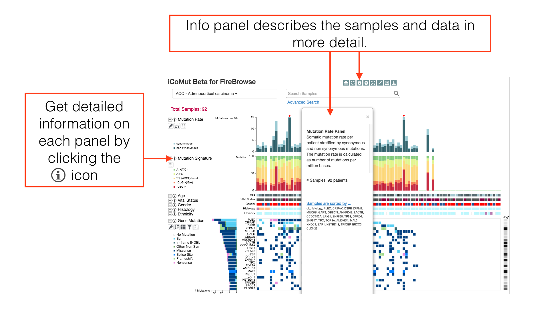 common X or Y axis. iCoMut arranges patients along the horizontal X axis, with analyses and