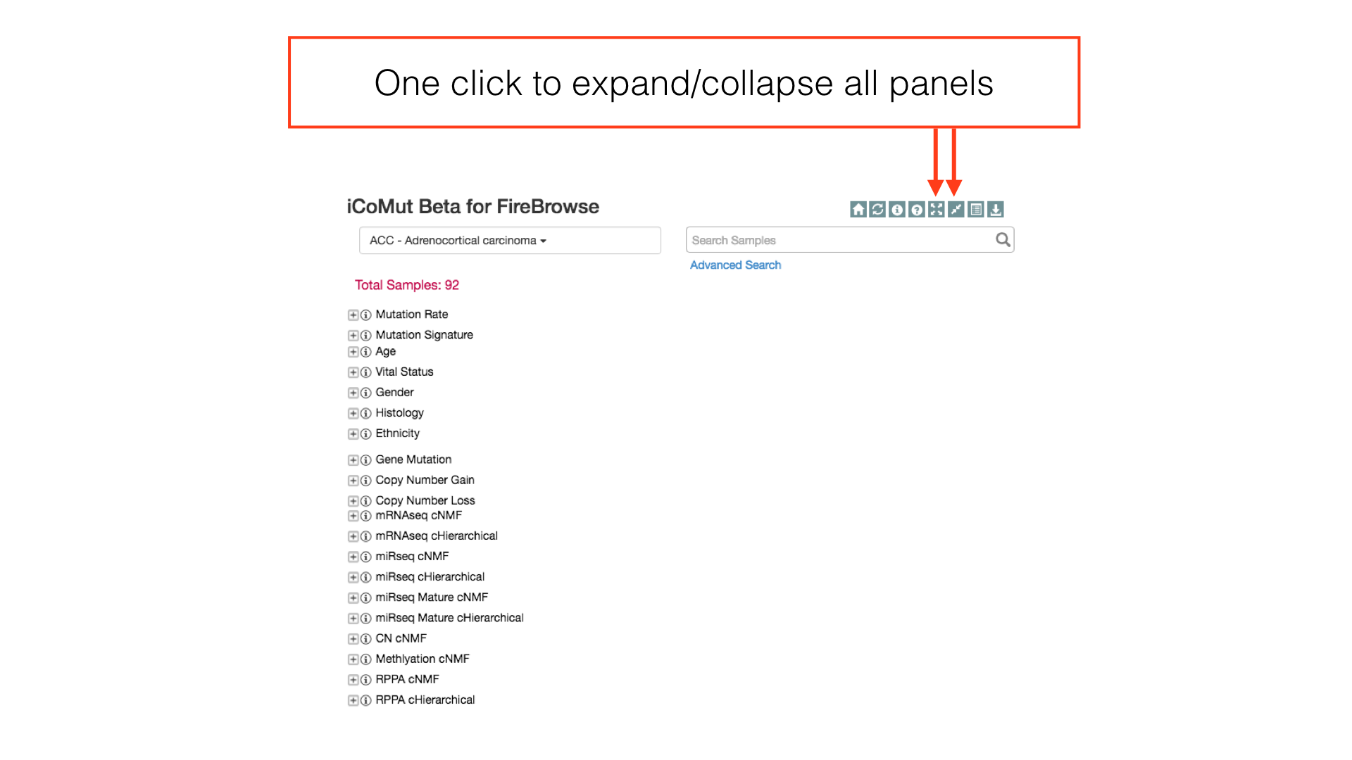 To more quickly expand and collapse all panels, use the buttons on the main iCoMut toolbar.