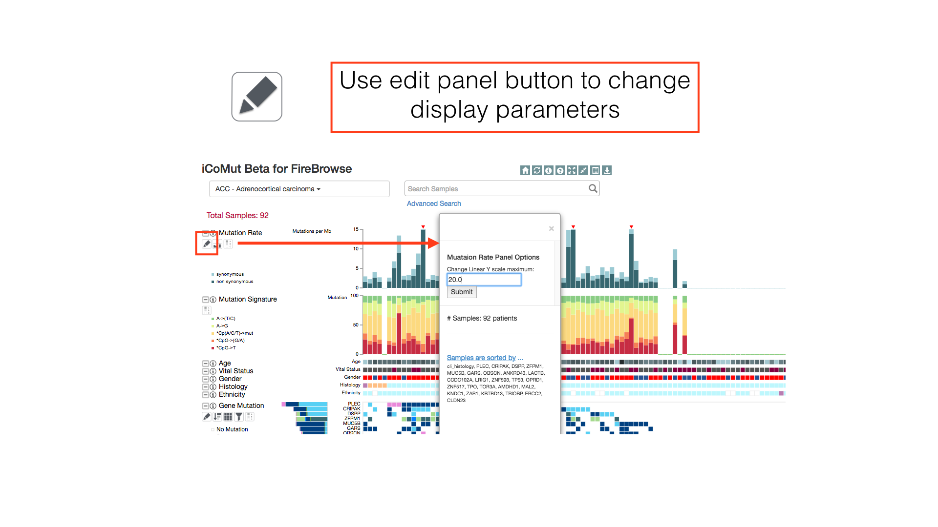 The edit button can be used to change the maximum Y value on the mutation rate panel.