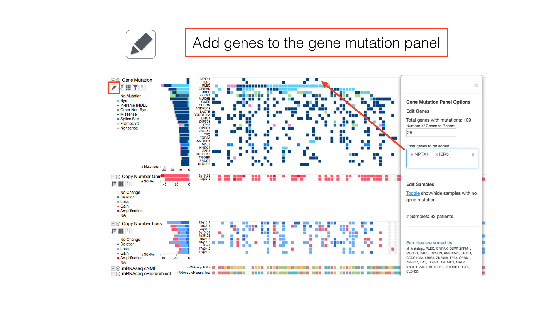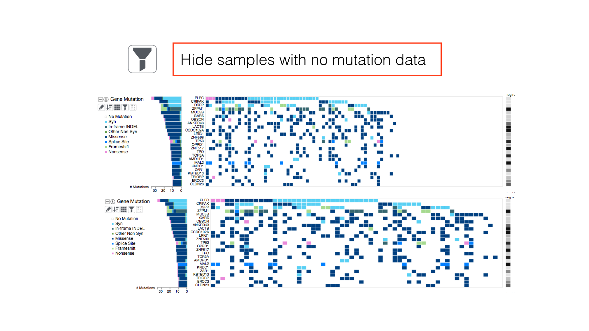 Filter out samples with no mutation information with the filter button.